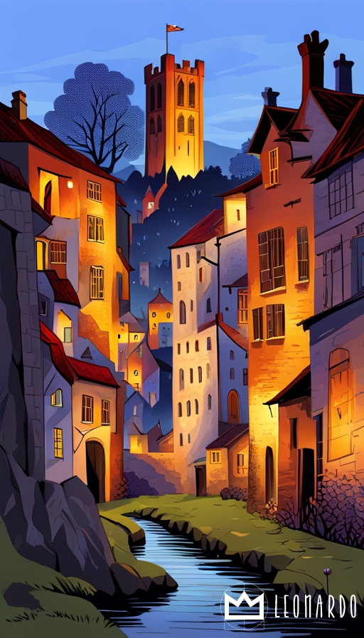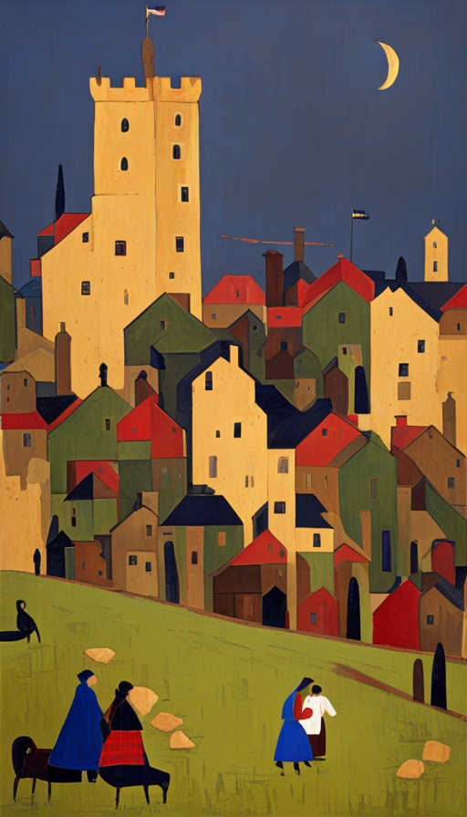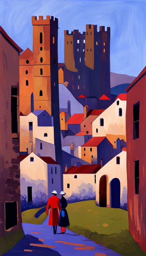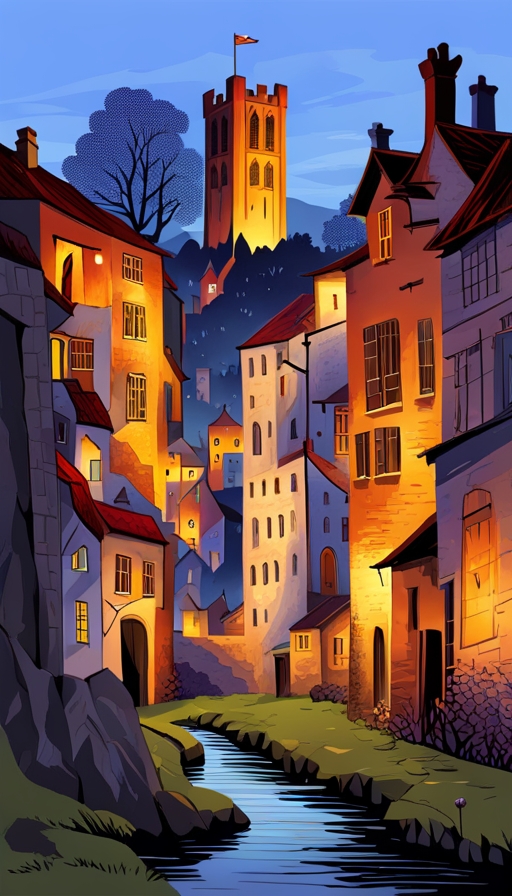 ancient village, castle, church, George Birrell style