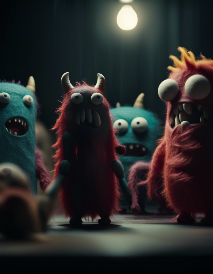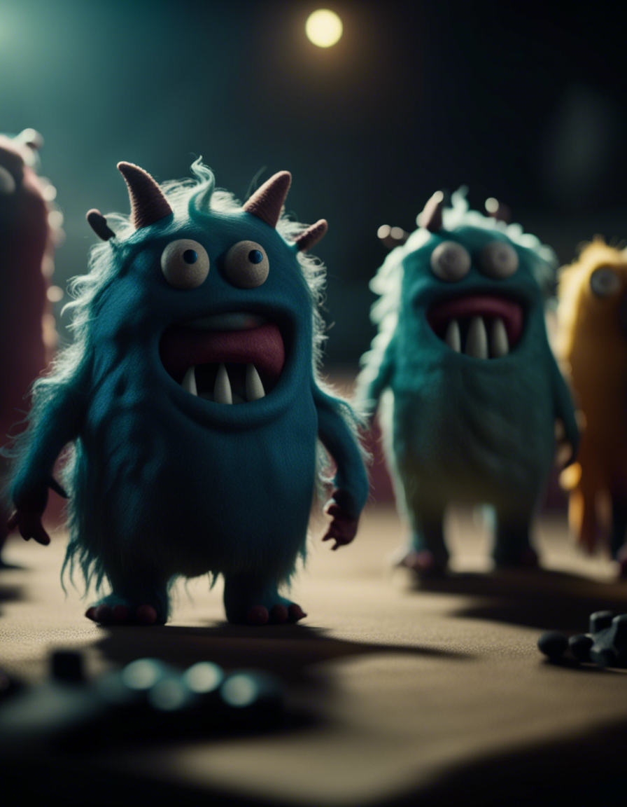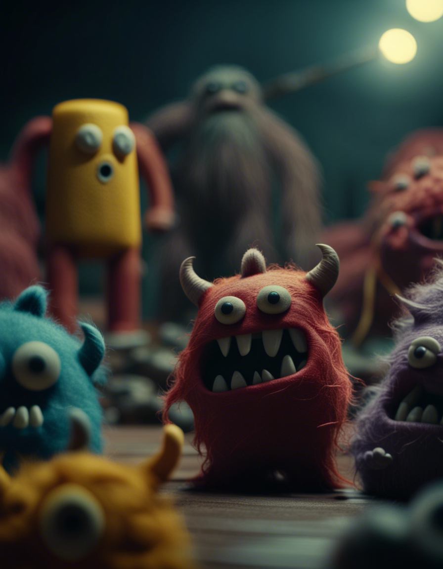 Felt monsters in a movie scene and dramatic lighting, 4k image, shot from a movie, cinematic composition shot, incredibly detailed, post - production, depth of field, movie, cinematography, cinematic, color grading, professional color grading,